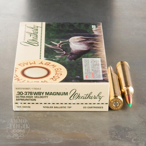 20rds - 30-378 Weatherby Mag. 165gr. Nosler Ballistic Tip Ammo