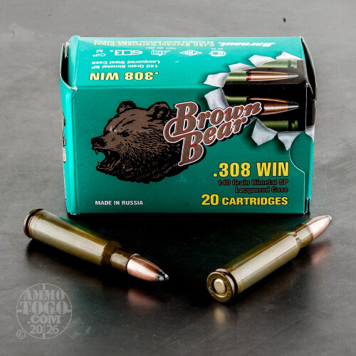 20rds - .308 Brown Bear 140gr. Soft Point Ammo Details