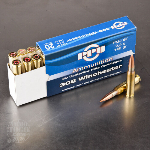 20rds - .308 Prvi Partizan 145gr. FMJ-BT Ammo Details
