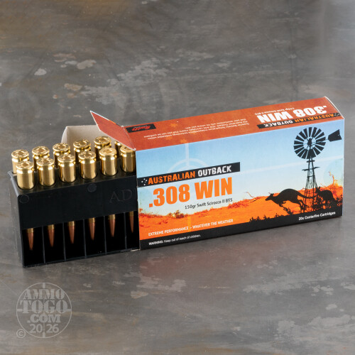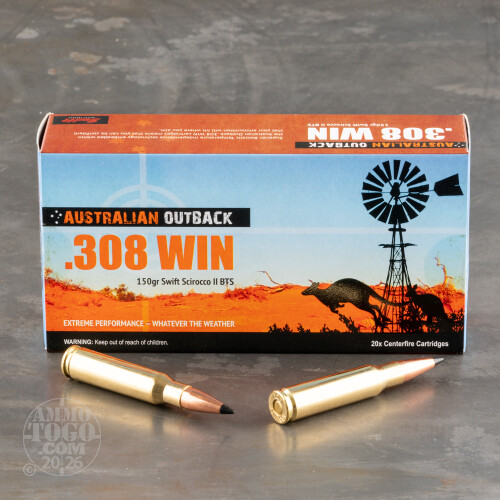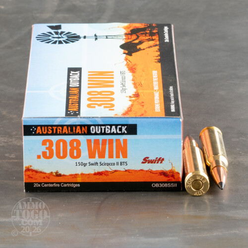 20rds – 308 Win Australian Outback 150gr. Swift Scirocco II Ammo Details