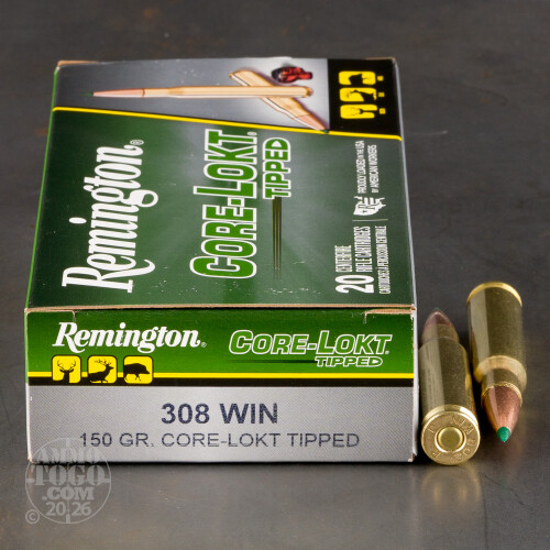 20rds – 308 Win Remington Core-Lokt Tipped 150gr. Polymer Tip Ammo