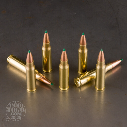 “The deadliest mushroom in the woods just got deadlier!” Remington’s Core-Lokt has toppled an inestimable number of bucks and hogs over the past nine decades – but there is always room for improvement, is there not? The company known as “Big Green” certainly thinks so, which is why they updated their beloved Core-Lokt with nothing less than a big green polymer tip!Does that tip look cool? Yes it does. But it’s not just about aesthetics. That tip completes this 308 Win round’s 150 grain bullet’s fine-tuned jacket and low-drag boat tail to ensure exemplary accuracy out of any hunting rifle. Once Remington’s premium primer and powder have done their job, the Core-Lokt Tipped proceeds to demonstrate what a 0.415 G1 ballistic coefficient can do: an extremely flat trajectory, at least 1,000 ft lbs of kinetic energy on impact until 563 yards, and supersonic velocity until 1,033 yards.