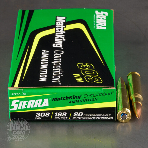 20rds – 308 Win Sierra MatchKing Competition 168gr. HPBT MatchKing Ammo