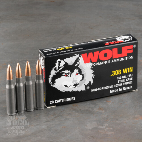 20rds – 308 Win Wolf 150gr. FMJ Ammo Details