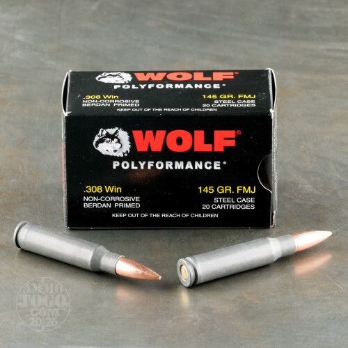 20rds – 308 Wolf Polyformance WPA 145gr. FMJ Ammo Details
