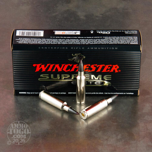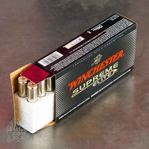 This package contains 20 rounds of non-corrosive Winchester Supreme Elite .325 WSM ammunition. Leaving the muzzle at a velocity of 2762 feet per second, each round delivers 3864 foot pounds of game-dropping muzzle energy. This ammunition is factory fresh, boxer primed, and loaded in nickel-plated brass cases that deliver reliable feeding and extraction.