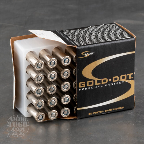 Speer uses only the highest quality components in their Gold Dot loads, including sure-fire CCI primers, low-flash propellants, and high-quality nickel-plated brass casings. Each of these factory fresh rounds produces a consistent muzzle velocity of 1500 feet per second with 500 foot pounds of threat-stopping energy.
