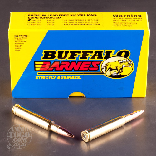 20rds - 338 Win. Mag. Supercharged Buffalo Bore 250gr. Barnes TSX HP Ammo Details