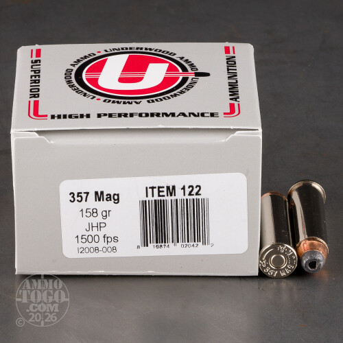 20rds – 357 Magnum Underwood 158gr. JHP Ammo Details