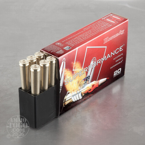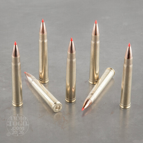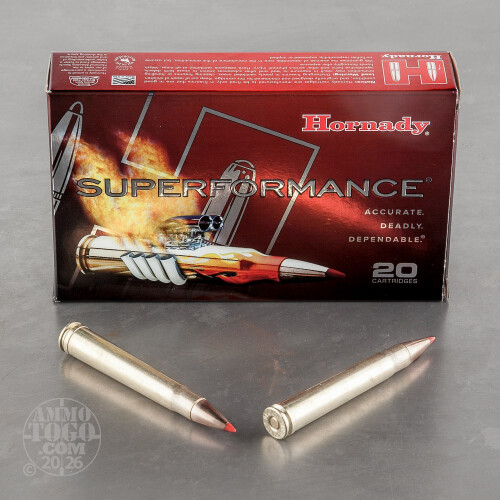 This .375 H&H Magnum ammo from Hornady's Superformance line stands out from other rounds in the caliber because of its extended range and higher relative velocity. The 250 grain GMX bullets possess a polymer tip which acts as windshield for the hollow point and contributes to a more consistent flight path. The hollow point causes the bullet to expand on impact and creates a devastating wound cavity that is great for taking down large boars, deer, and elk. Advanced propellants and all gilded metal (lead free) bullet construction allow shooters to enjoy more accuracy with less felt recoil. These rounds are assembled with reloadable brass casings fitted with non-corrosive Boxer primers and are packaged 20 rounds to a box.-
