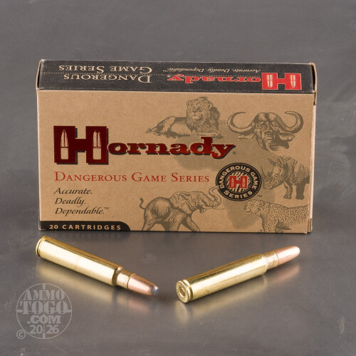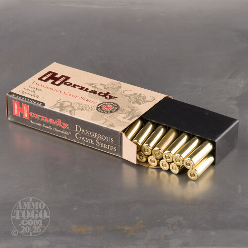 This is .375 Ruger Hornady Custom 300gr. Dangerous Game X Superformance Ammo. The 375 Ruger exceeds 375 H&H performance. Smoothest feeding dangerous game cartridge on the market. Field proven terminal performance. The 375 Ruger sets new standards for African big game rifles and ammo. 300 gr RN expanding bullet transfers energy quickly, and creates a large wound cavity while delivery excellent penetration. A perfect choice for dangerous game that requires devastating energy to incapacitate. This ammo comes packed in 20rds. per box.