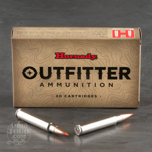 This 375 Ruger cartridge from Hornady’s Outfitter line of ammunition sports its manufacturer’s 100 percent copper alloy GMX projectile. The monolithic bullet will benefit your hunt in myriad ways: no sweating over an encounter with the authorities on protected lands, no loss of accuracy over time as the result of barrel leading, and no contaminating your kill’s meat or the sensitive environment around you with toxic lead residues. The GMX’s terminal effect is enhanced by virtue of its copper composition as well: Without a core and jacket that are capable of separation, the GMX loses no more than five percent of its weight even as it expands up to 1.5 times its original diameter during penetration!Outfitter ammo is designed to work when other rounds might give up. This cartridge’s nickel plated brass casing not only feeds and extracts like a dream, but is inherently better able to weather the sort of adverse conditions that a deer or elk hunt might force you to slog through. The round’s sealed primer and case mouth do even more to protect it from rain, humidity, and meltwater as well.