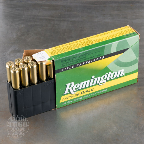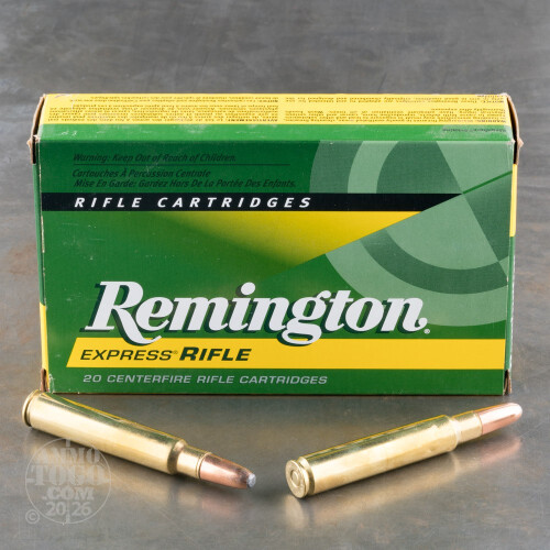 This is 375 RUM Remington Express 270gr. Hornady Soft Point Ammo. Remington's Express Rifle series consists of a multitude of calibers and popular bullet styles to match your specialized hunting and shooting pursuits. This load utilizes a 270gr. soft point from Hornady to ensure that you get the maximum potential from your 375 RUM rifle. This ammo is brass cased, boxer primed, non-magnetic and non-corrosive. This ammo comes packaged 20rds. to a box. Muzzle Velocity: 2900 fps.