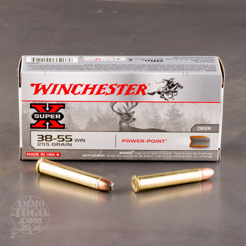 This is .38-55 Win 255gr. Super-X Soft Point ammo. Soft point bullets are designed for rapid, controlled expansion and maximum impact. The muzzle velocity is 1320 fps and the energy is 987 ft lbs. This ammo comes packed in 20rd. boxes.