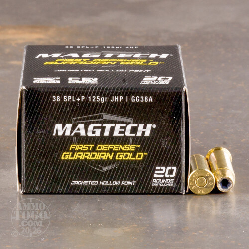 This package contains 20 rounds of Magtech Guardian Gold .38 Special ammunition. Each cartridge is loaded with a 125 grain jacketed hollow point projectile. An ideal option for self-defense, especially for budget-conscious shooters, Magtech Guardian Gold provide exceptional energy transfer, optimal penetration, impressive terminal expansion, and reliable accuracy.