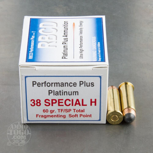 20 Rounds - 38 Special RBCD Performance Plus 60 Grain TFSP Ammo
