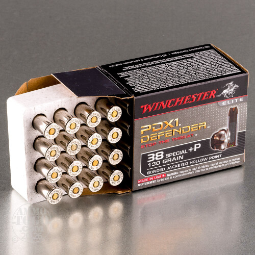 20rds – 38 Special +P Winchester Defender 130gr. PDX1 Bonded JHP Ammo