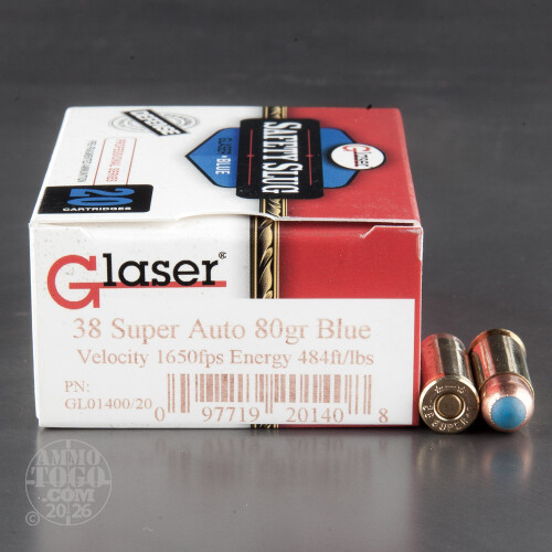 20rds - 38 Super Auto Glaser Blue 80gr. Safety Slug Ammo
