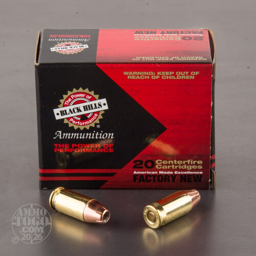 This package contains 20 rounds of Black Hills .380 Auto (ACP) ammunition. Each cartridge is loaded with a 90 grain jacketed hollow point (JHP) projectile. Delivering impressive terminal expansion, energy transfer, and balanced penetration, these loads are perfect for personal protection and home defense.