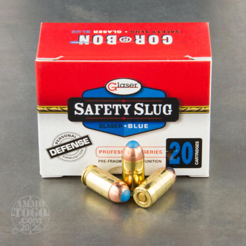 This is 380 Auto Glaser Blue 70gr. Safety Slug Ammo. For over 30 years, Glaser Safety Slug has been the perfect choice for use in populated, urban areas. Glaser's composite design uses a special thin-wall jacket, and a precision compressed lead shot core with a soft polymer tip. This construction provides optimum balance between penetration and fragmentation. The round nose profile of this round guarantees Reliable feeding. Stopping power is maximized by the complete dispersal of the bullet energy into the intended target with immediate shock and trauma. This rapid fragmentation delivers the energy to a large area. Reduced recoil allows a fast recovery for follow up shots if necessary. This makes Glaser the best choice for defensive situations. Glaser Blue penetrates five to seven inches in the International Ballistic Wound Association (IWBA) protocol testing. The Glaser blue Safety Slug uses #12 shot compressed into a solid form, which produces immediate energy dispersal into the target, reducing the possibility of over penetration and creating abrupt stopping power. The numerous projectiles disperses outward generating an effective wound cavity. This load reduces the possibility of over penetration through the intended target. It provides for an added margin of safety. A missed round is much more likely to break up on an interior wall and dump its energy rather than proceeding unabated into an adjoining room and injuring an innocent bystander. The light fast bullets reduce the felt recoil and are excellent loads for the small compact carry guns and snub nose revolvers. For over 30 years the Glaser Safety Slug has been the overwhelming choice for the "house gun" stored in the nightstand.