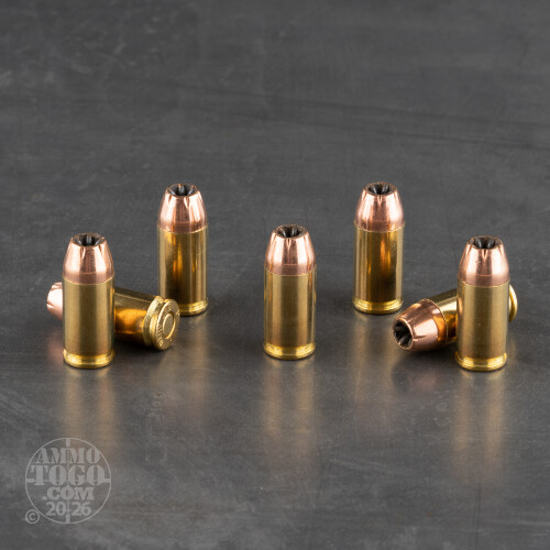 This 380 Auto cartridge by PMC features its South Korean manufacturer’s 95 grain Starfire projectile, which uniquely possesses a patented rib and flute hollow cavity design. Upon impact the notched jacket peels away to produce five pointed copper petals -- hence the “star” in its name. As the bullet expands the ribs in its cavity wall are forced apart, causing incredibly rapid expansion of its core down its entire length. This exposes the ribs even further, letting them effectively cut whatever organic material they’d penetrate through. The effect is a bullet with devastating stopping power, and also one which poses less risk of overpenetration which even further suits it for self-defense.PMC products are manufactured by the Pyongyang Corporation, the same company which supplies their nation’s military with everything from small arms ammunition to howitzer rounds. In addition to its incredibly effective projectile this round offers a brass casing and non-corrosive Boxer primer.