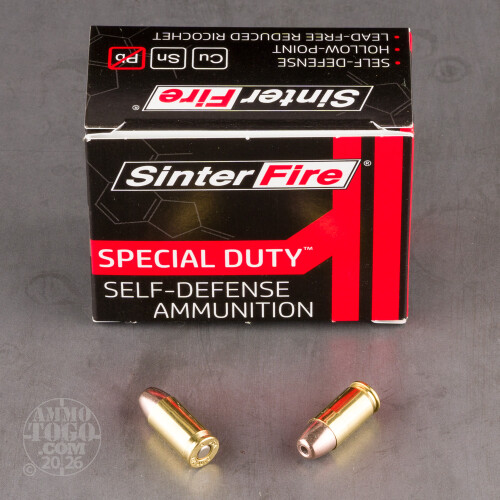 SinterFire has been a leader in the lead-free and frangible ammunition market since 1998. With the quality and accuracy that comes from SinterFire, along with the stopping power and damage capacity that frangible hollow point projectiles demonstrate, you have a great round for self defense. These 75 grain bullets are designed to disintegrate upon impact with a hard surface so there is zero bullet pass through. Sinterfire uses boxer primed brass cases that are non-corrosive and re-loadable. Snatch up these high quality, high performing, lead free rounds today!