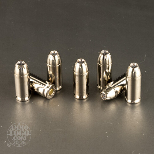This self-defense ammo’s cases are plated with shiny and corrosion resistant nickel. The sleek plating also helps to avert a failure to feed or extract in a semi-automatic pistol or carbine. Its Boxer primers make this ammo both non-corrosive and reloadable.
