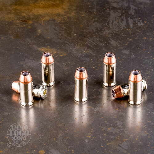 This is 40 S&W Corbon 135gr. Hollow Point Ammo. Like no other, Corbon's JHP loads have proven stopping power. Their JHP loads come loaded with higher velocity and more energy values then their competitors. What you'll get is a bullet traveling faster, but on impact the higher velocity will cause the hollow point to expand into A mushroom shape dispersing its energy into the target. Energy dispersal is the key to COR-BON's proven stopping power.