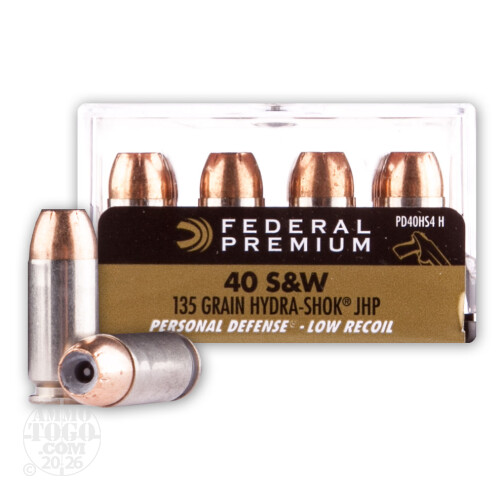 This is 40 S&W Federal Hydra-Shok PD 135gr. Hollow Point Ammo. This ammo contains a post in the middle of the hollow point to give it rapid expansion and deep penetration. This ammo is also very suitable for short barreled weapons and women shooters, because it is a reduced recoil round. This ammo has proven stopping power. Comes packed in 20rds. per box.