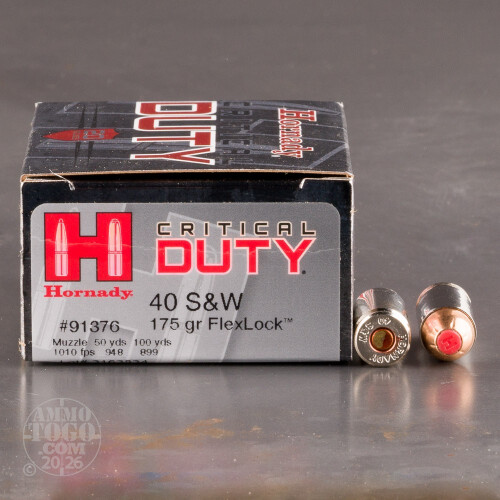 20rds – 40 S&W Hornady Critical Duty 175gr. FlexLock Ammo