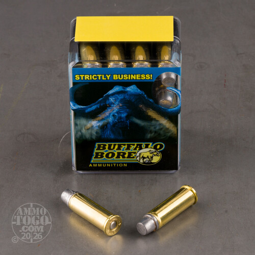This is .41 Mag Heavy Buffalo Bore 230gr. Keith Ammo. Buffalo Bore 16B is designed for deep penetration on large game. You can expect good penetration in normal flesh and bone. Muzzle velocity of 1450fps. This ammo is packed in 20rd boxes.
