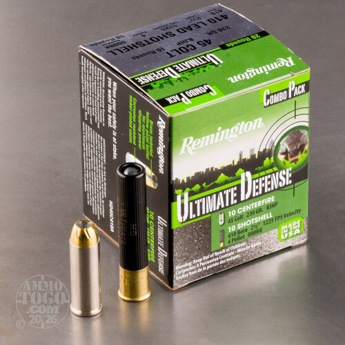 20rds - .410/.45 Colt Remington Ultimate Defense .410 2 1/2" 000 Buck / .45 Colt 230gr. BJHP Combo Pack Ammo