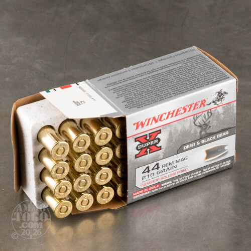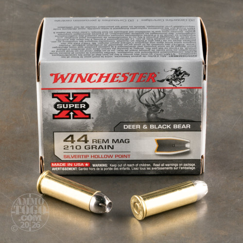 This is 44 Mag Winchester Silver Tip 210gr. Hollow Point Ammo. This ammo has the patented Winchester Silver Tip Hollow Point Bullet. This is the recommended ammo of many handgun manufacturers. It is a tried and true hollow point for self defense. This ammo is brass cased, boxer primed, non-corrosive and non-magnetic. This ammo comes packed in 20rd. boxes.