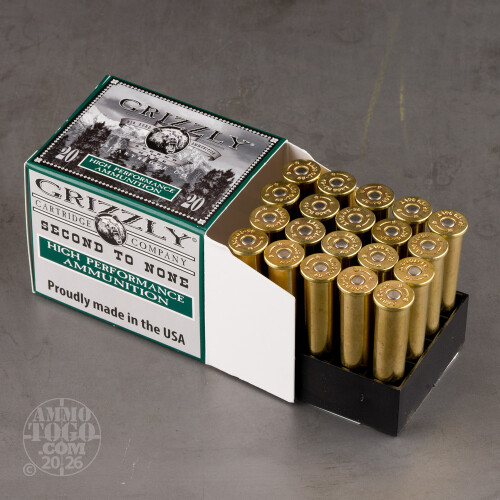 This is overpressure 45-70 Government ammunition. Do not fire +P ammo in an antique rifle, or one that isn’t designed to accommodate above-standard chamber pressure. Firearm damage and physical injury may result.Grizzly Cartridge Company of Rainier, Oregon wants you to hunt with powerful 45-70 ammo. So do we, which is why we’re offering Grizzy’s best with fast shipping! This round’s potent propellant charge accelerates its 300 grain projectile to a velocity that is around 16% faster than standard, which translates to significantly stronger recoil and striking energy, as well as a flatter trajectory!
