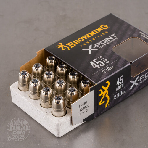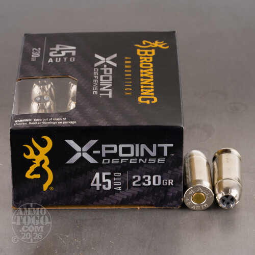 20rds – 45 ACP Browning X-Point Defense 230gr. JHP Ammo Details