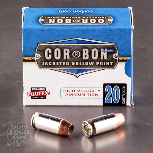 This is 45 ACP Corbon 230gr. +P Hollow Point Ammo. Like no other, Corbon's JHP loads have proven stopping power. Their JHP loads come loaded with higher velocity and more energy values than their competitors. What you'll get is a bullet traveling faster, but on impact the higher velocity will cause the hollow point to expand into a mushroom shape dispersing its energy into the target. Energy dispersal is the key to COR-BON's proven stopping power.