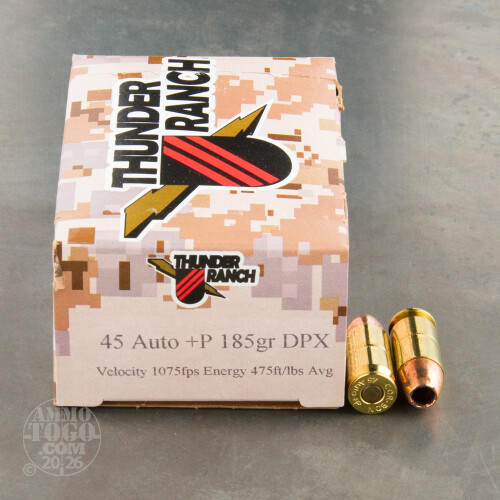 20rds - 45 ACP Corbon Thunder Ranch DPX 185gr. +P HP Ammo Details