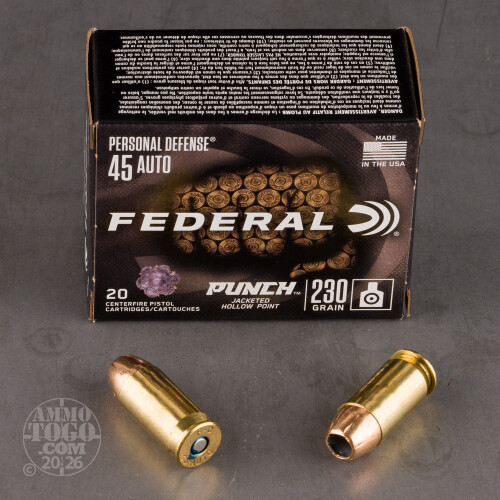 20rds – 45 ACP Federal Punch 230gr. JHP Ammo Details