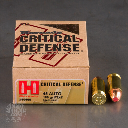 20rds - .45 ACP Hornady Critical Defense 185gr. HP Ammo