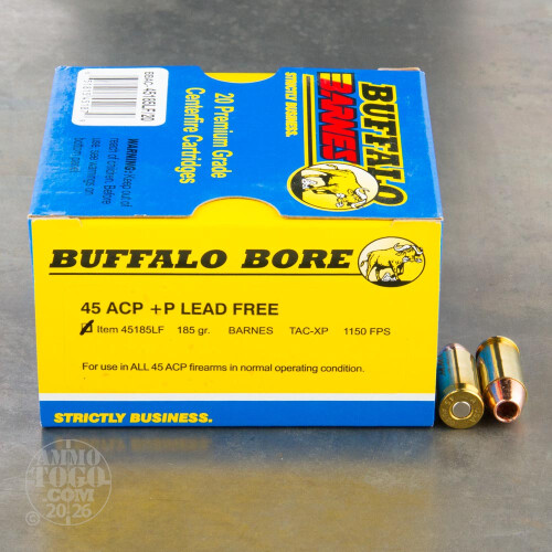 20rds - 45 ACP +P Buffalo Bore 185gr. TAC-XP Ammo Details
