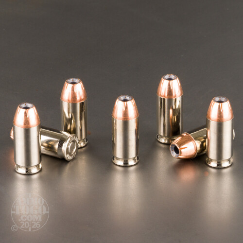 A 45 ACP handgun is a great way to convey a very particular message: “Leave me the heck alone.” And loading 45 ACP +P ammunition in your weapon is equivalent to underscoring the “heck.”Underwood loads this round to add 100 fps to its muzzle velocity. At close range its 185 grain bullet bombards its target with well over 550 ft lbs of energy, which is roughly ten percent more powerful than a standard pressure load. The bullet is Nosler’s work, a jacketed hollow point which retains its momentum while rapidly expanding outward throughout penetration to issue a deep, wide injury that ought to stop a threat dead in their tracks.