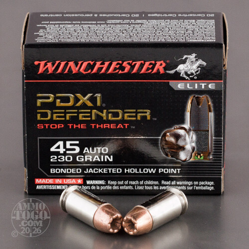 20rds – 45 ACP Winchester Defender 230gr. PDX1 Bonded JHP Ammo