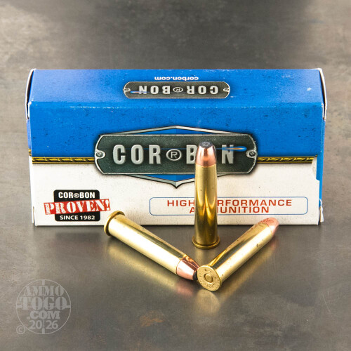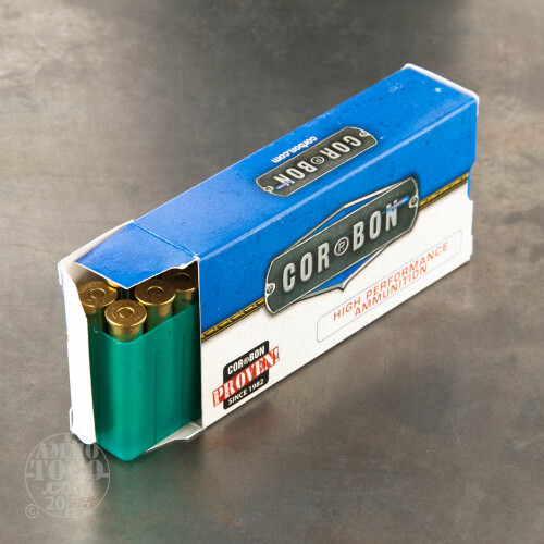 This is 45-70 Govt. Corbon Hunter 350gr. Bonded Core Soft Point Ammo. Corbon's Bonded Core Soft Points are designed to retain their weight and stay together while crushing through heavy bone and tissue in large game. Corbon's Penetrator and Hard Cast loads are designed for very large, tough-skinned and heavy-boned animals. The Penetrator loads use a heavy, full jacket with a hard linotype core. The Hard Cast load is made from a hard linotype lead with a proven LBT nose design. These two loads cause a through-and-through hole, breaking even the heaviest bones. Our customers have taken large game such as Moose, Brown Bear and Cape Buffalo with our Hard Cast and Penetrator loads. This ammo comes packed in 20rd boxes.