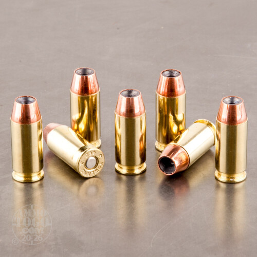 This .460 Rowland hunting ammunition from Corbon excels against thin-skinned game with a heavy expanding bullet capable of bringing down deer or other midsize targets. Each cartridge in this 20-round box propels a 230 grain jacketed hollow point projectile to a muzzle velocity of 1,250 feet per second. The high velocity of this ammo helps produce high diameter mushrooming for a more reliable one-shot kill on tougher animals. Corbon ammo is loaded in Sturgis, South Dakota using non-corrosive primers and brass cases.-