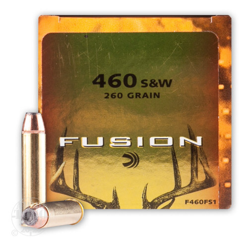 This is .460 S&W Mag Federal Fusion 260gr. Flat Nose Soft Point Ammo. This ammo has been developed for handgun hunting which is one of the most challenging ways to take game. You choose to use your wheelgun because you like to get up close and personal with your trophy. Fusion technology ammo is optimized for the short-range, maximum impact requirements of handgun deer hunters. This ammo comes packed in 20rds. per box.