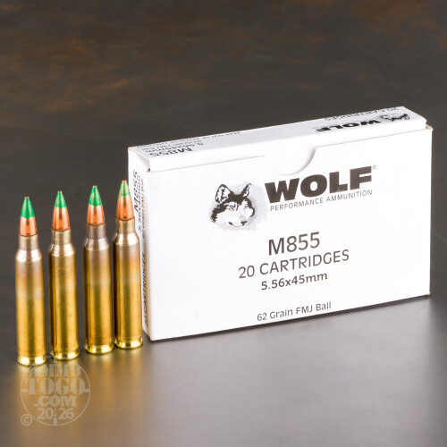 20rds – 5.56x45 Wolf Gold 62gr. FMJ M855 Ammo