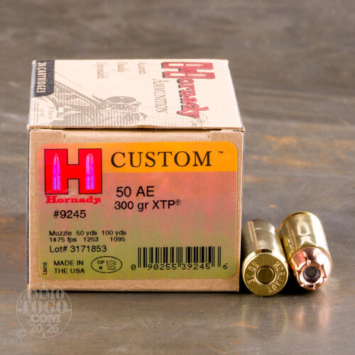 20rds - 50 AE Hornady 300gr. XTP Hollow Point Ammo Details
