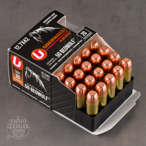 20rds – 50 Beowulf Underwood 350gr. FMJ Ammo