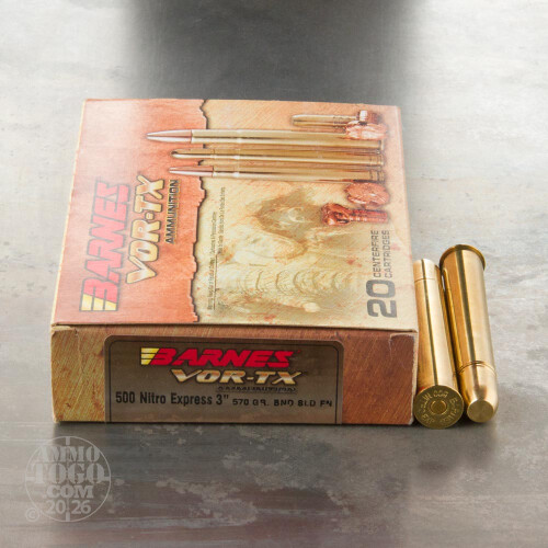 20rds - 500 Nitro Express 3" Barnes VOR-TX 570gr. Banded Solid FB Ammo