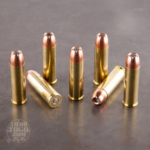 Whether it be hunting hogs or stalking bears, these American made .500 S&W Magnum rounds from Armscor will be a great companion to have! These rounds are constructed using proven components including reloadable brass casings, non-corrosive Boxer primers, time-tested propellant, and Hornady eXtreme Terminal Performance (XTP) projectiles. The XTP bullet is one of the most effective modern jacketed hollow-point designs and features a precisely shaped cavity with deep skiving and a toothed cannelure; these features all contribute to reliable expansion at a controlled rate with an emphasis on consistent penetration into the appropriate vital zones.